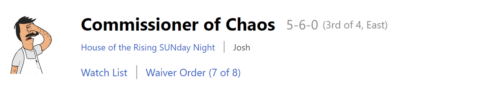 #6 – Josh (Commissioner of Chaos)